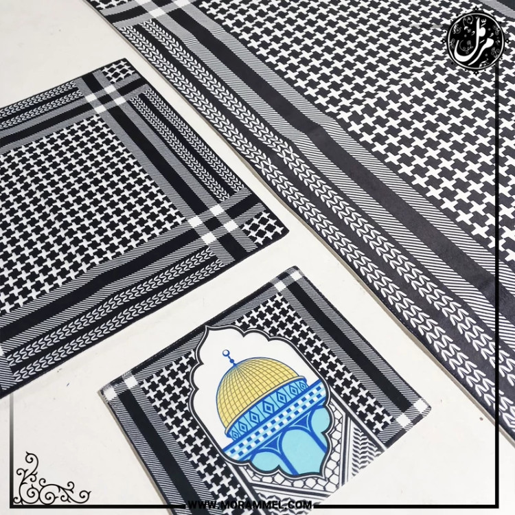 سجاده و جانماز سه تکه مخمل ضخیم آستری دوخته شده از جنس ساتن سه تکه شامل سجاده 60 در 93 جانماز 37 در 37 جا مهر 22 در 18 قابل شستشو و اتوکشی